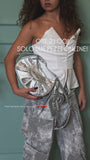 La nostra “Bag grace silver” ha dimensioni 25x15x9 cm, e comprende tre accessori: tracolla spalla larga con borchie e regolabile, specchietto a forma di cuore e portamonete utilizzabile.