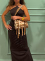 Le decorazioni esterne valorizzano il modello: la tracolla arricchita da dettagli in argento e la catenella coordinata aggiungono luminosità e carattere. La chiusura con bottone magnetico garantisce praticità e sicurezza, mantenendo lo stile chic e moderno.