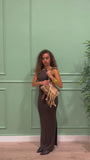 La nostra borsa artigianale "Bag Mabel caffè dettaglio panna" un prodotto 100% Made in Italy, realizzata interamente a mano con materiale lycra soft premium ,ovvero di alta qualità.