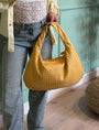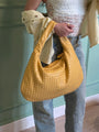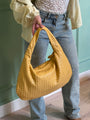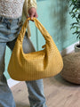 Borsa " Monaco Senape", con motivo intrecciato, da indossare comodamente a spalla grazie al manico di ottima qualità.