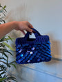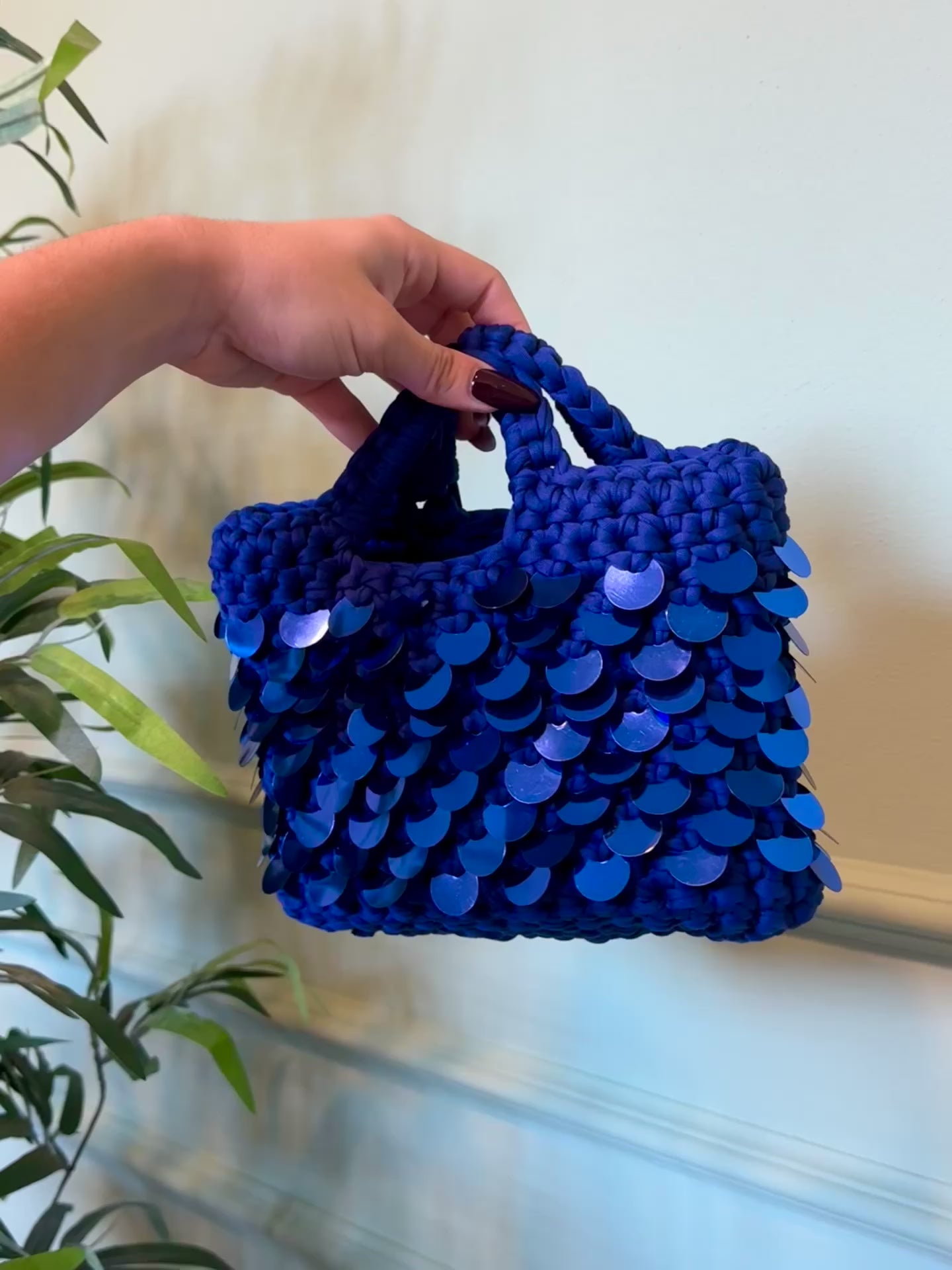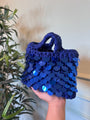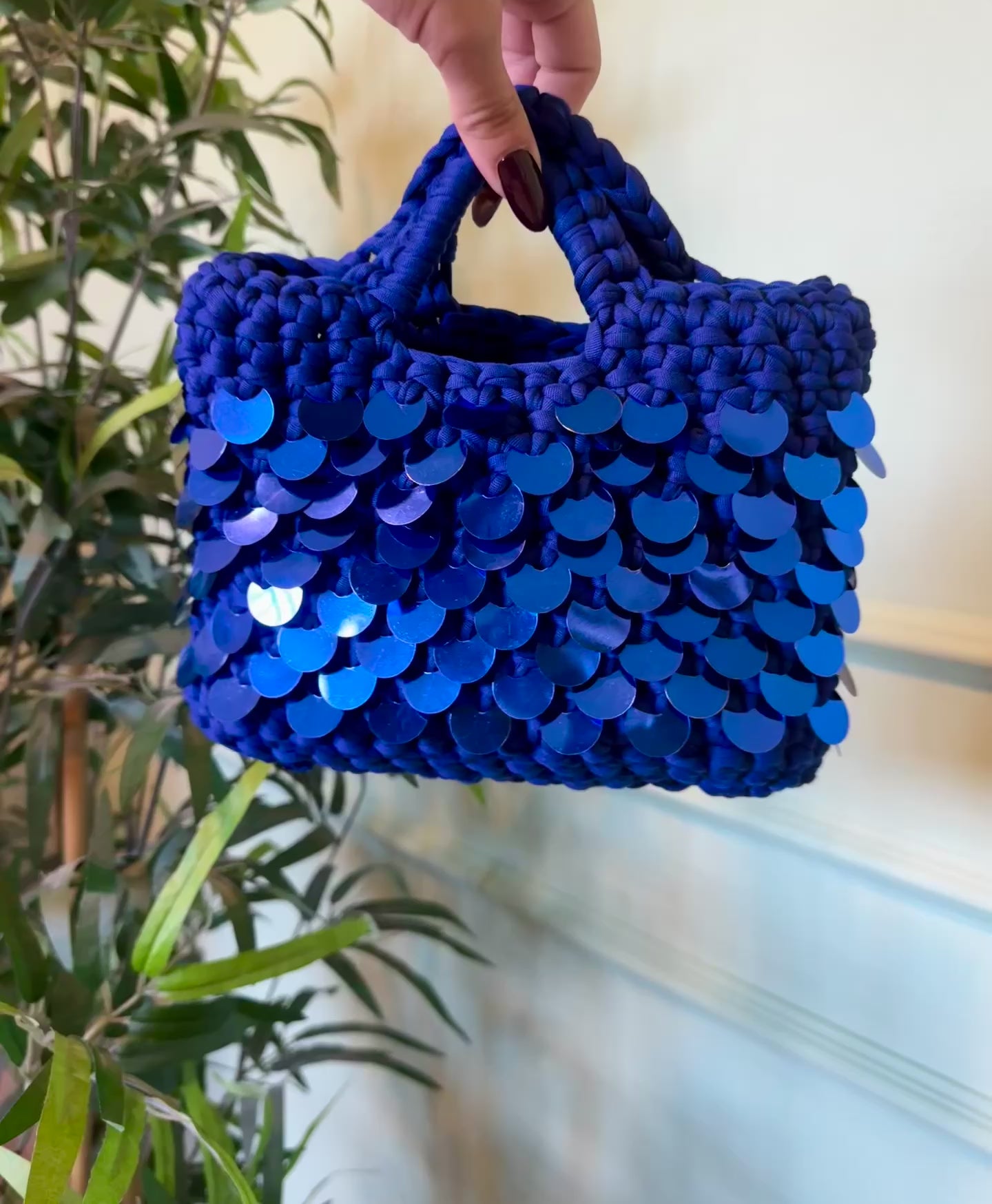 La nostra "Bag Titì blu notte con paillettes",ha dimensioni 27x24x3 cm ,ed è completamente realizzata a mano!