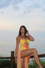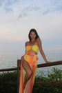 Il coordinato ISABEL è pensato per chi vuole sentirsi unica e radiosa, sia in spiaggia che durante un aperitivo al tramonto. È composto da un body e da una gonna lunga semi-trasparente.