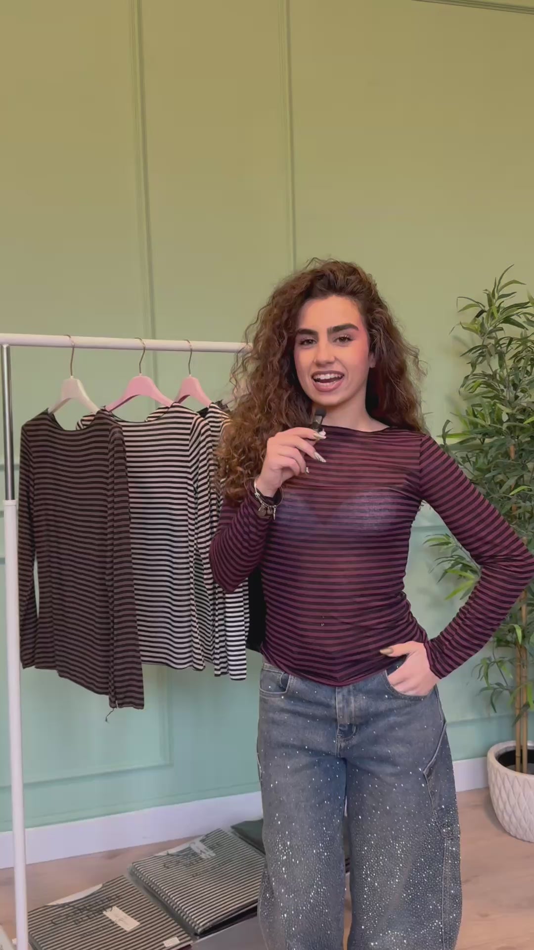 Maglia in cashmire disponibile in sei varianti di colore, con fantasia a righe.