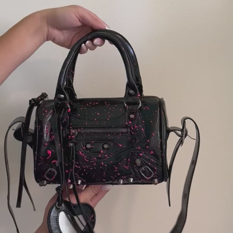 La nostra”Bag Paris mini magnifique” è una borsa a mano, capiente e versatile con tracolla regolabile e specchietto a forma di cuore inclusi.