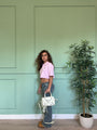 La nostra “Paris mini total White” a uno borsa a mano, capiente e versatile con tracolla regolabile a spalla larga con borchie, e specchietto a forma di cuore inclusi.
