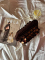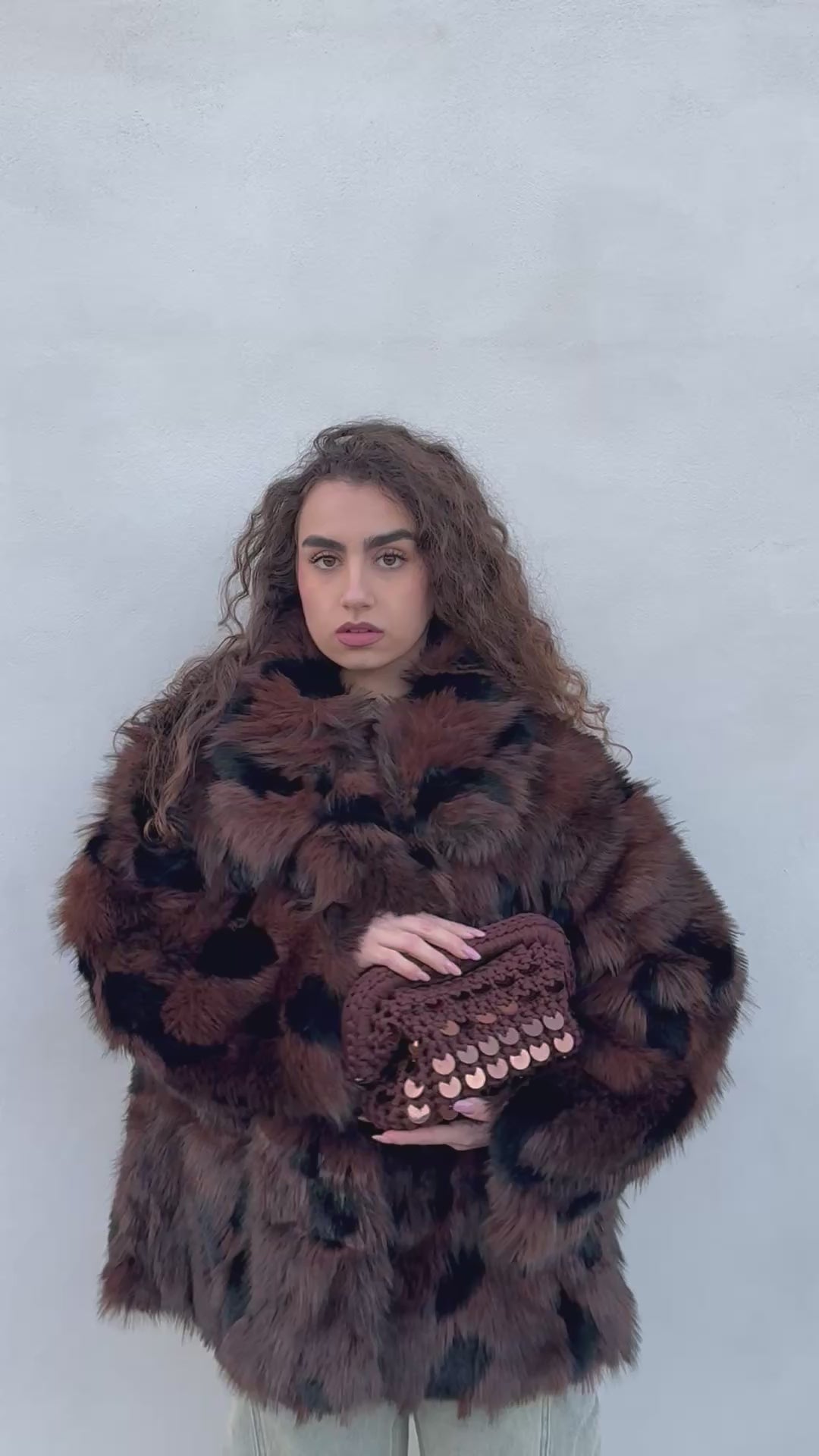 Pasticcino medium caffè paillettes, realizzata 100% a mano con tessuti Premium made in Italy.