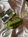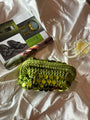 Pasticcino medium verde paillettes, realizzata 100% a mano Con tessuti Premium made in Italy.
