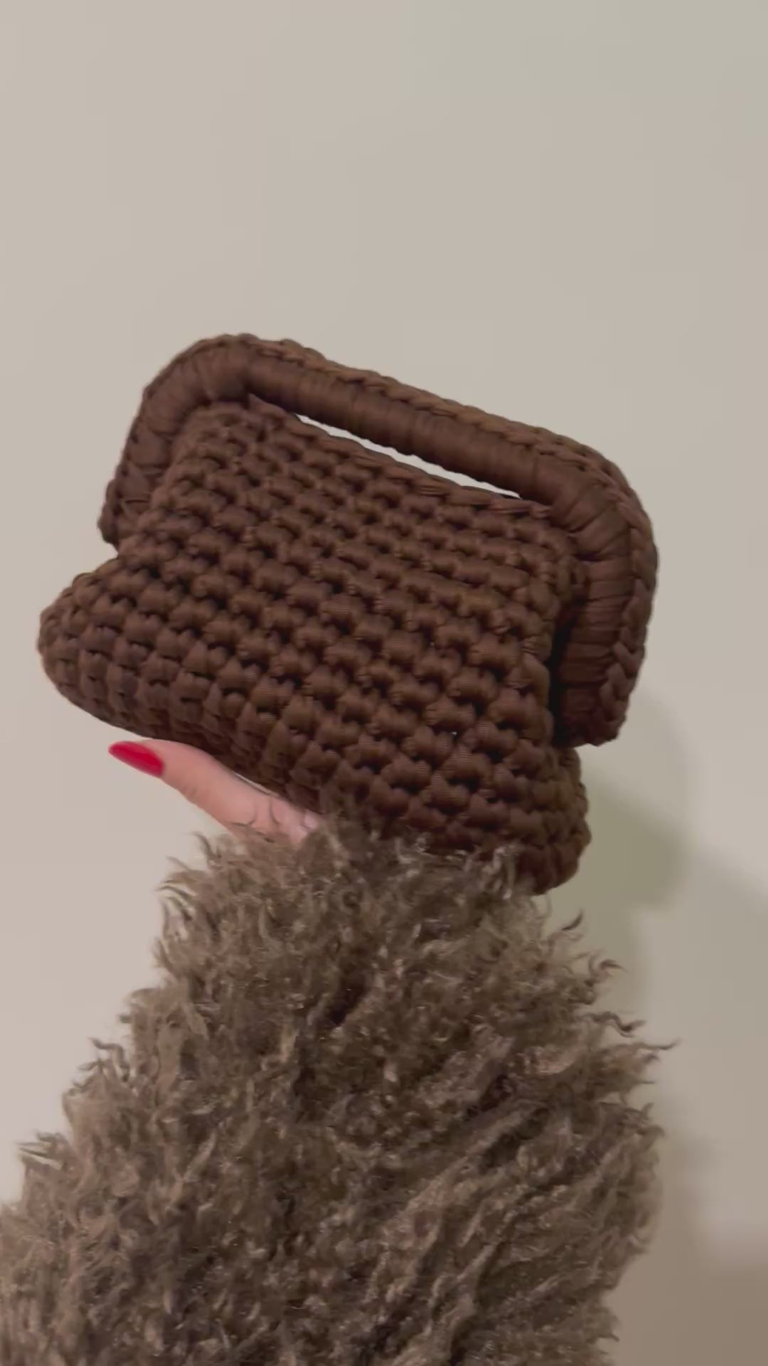 La nostra “Bag pasticcino small caffè” è un pezzo unico ed irripetibile realizzato interamente a mano.