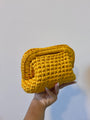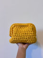 La nostra “Bag pasticcino small senape ” è un pezzo unico ed irripetibile realizzato interamente a mano