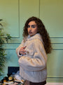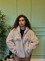 La Pelliccia presenta dettagli frontali con spille decorative in colorazione oro e chiusura con cerniera.
