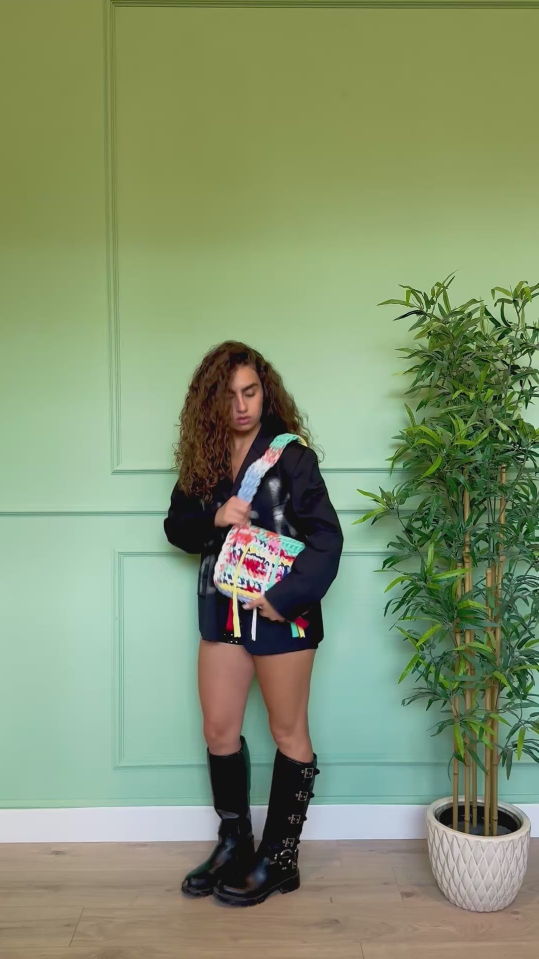 La nostra borsa artigianale "Bag Mabel multicolor" un prodotto 100% Made in Italy, realizzata interamente a mano con materiale lycra soft premium ,ovvero di alta qualità.