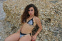 Il bikini VITÓRIA unisce il fascino sensuale dell’animalier a una costruzione sartoriale in pizzo nero ricercata. Il motivo a macchie, si accende sul fondo bianco e viene incorniciato da un raffinato bordo in pizzo nero, applicato sia sulle coppe che lungo i fianchi dello slip. Un contrasto netto, ma armonico, che richiama forza e femminilità.